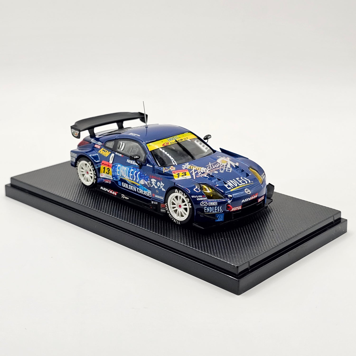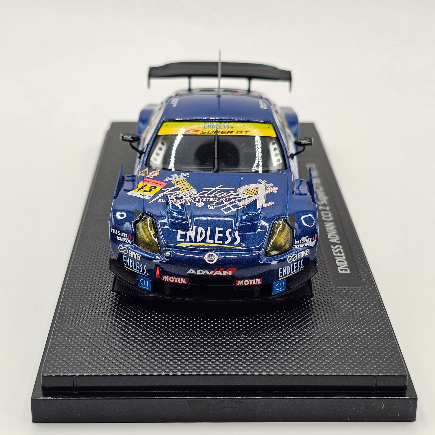 Highly detailed, discontinued and now quite rare 1/43 scale diecast EBBRO model of the Nissan Fairlady Z #13 Endless Sports, as driven by Tomonobu Fujii & Masami Kageyama throughout the 2006 Super GT season in the GT300 class.