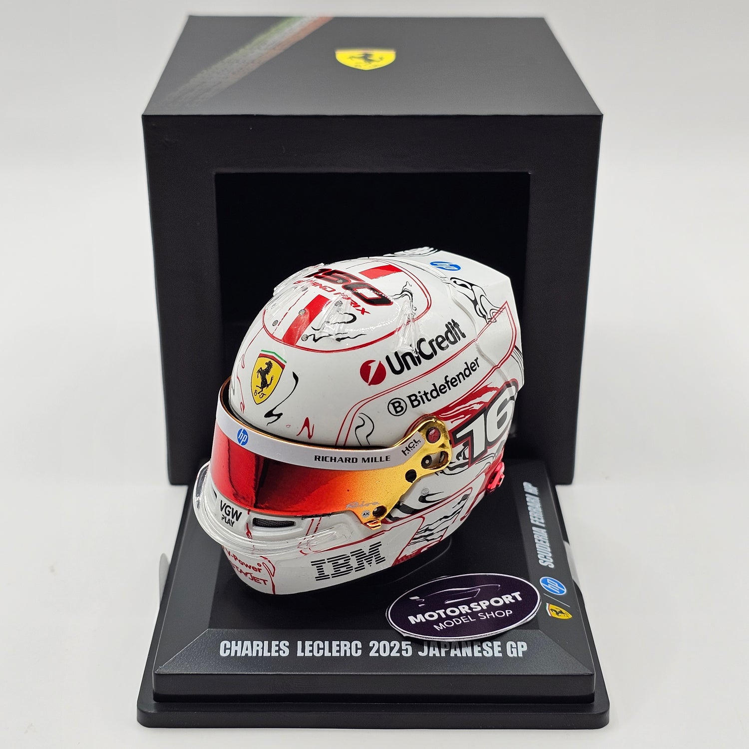 Highly detailed resin 1/5 Helmet as worn by Charles Leclerc at the 2025 Japanese GP, marking his 150th race in Formula One.