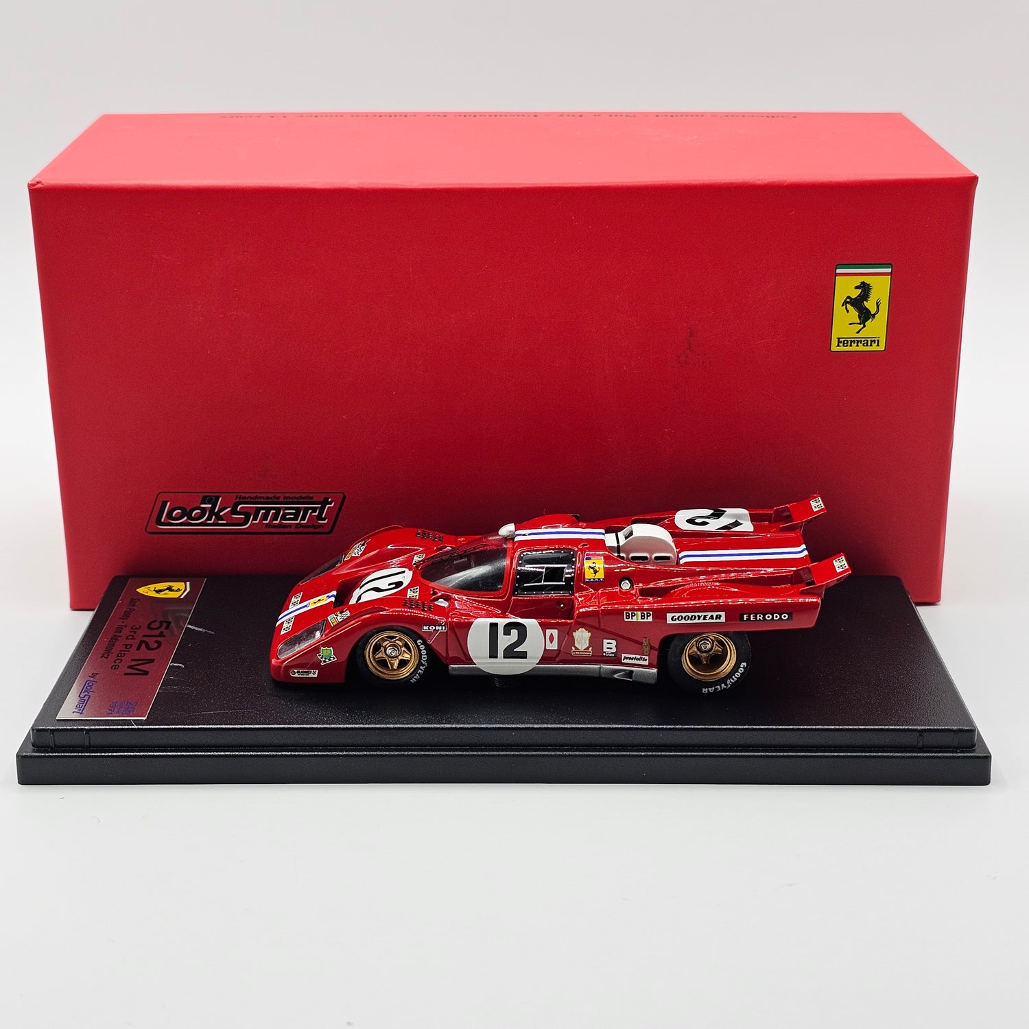 Highly detailed resin Looksmart model of the Ferrari 512M #12 North American Racing Team, as driven to third place overall by Sam Posey & Tony Adamowicz at the 1971 24 Hours of Le Mans.