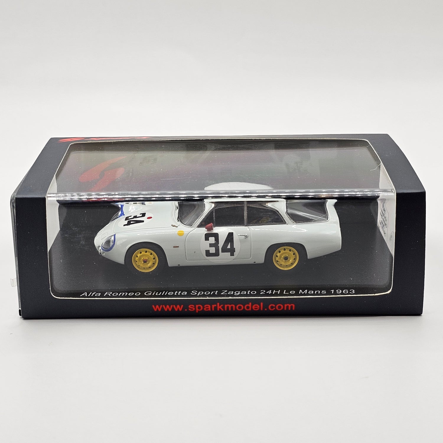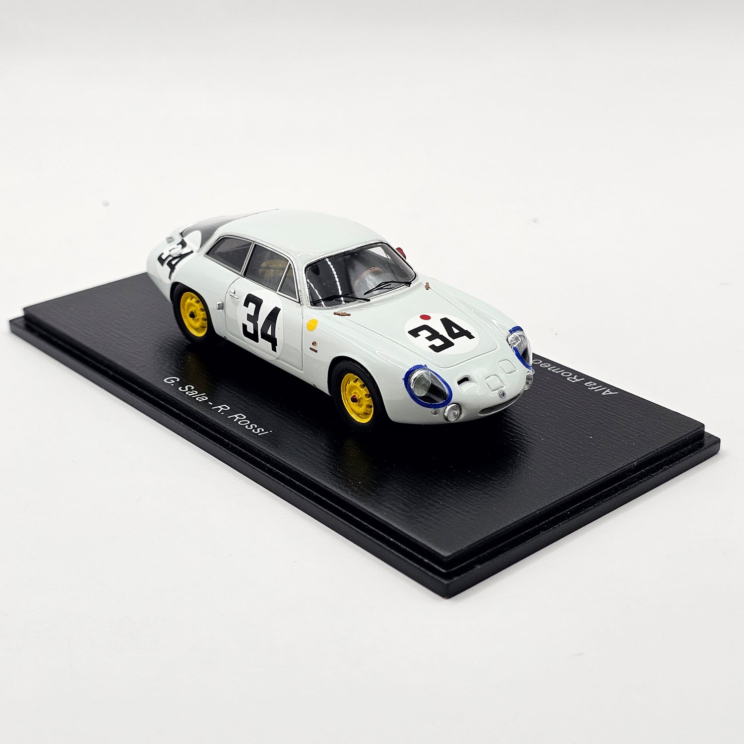 Highly detailed resin Spark model of the Alfa Romeo Giulietta SZ #34 Scuderia Sant Ambroeus, as driven by Giancarlo Sala & Romolo Rossi at the 1963 24 Hours of Le Mans in 1/43 scale.