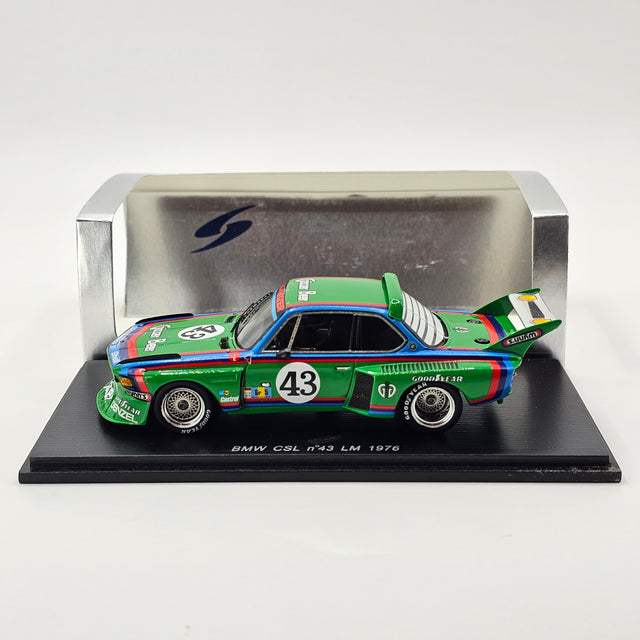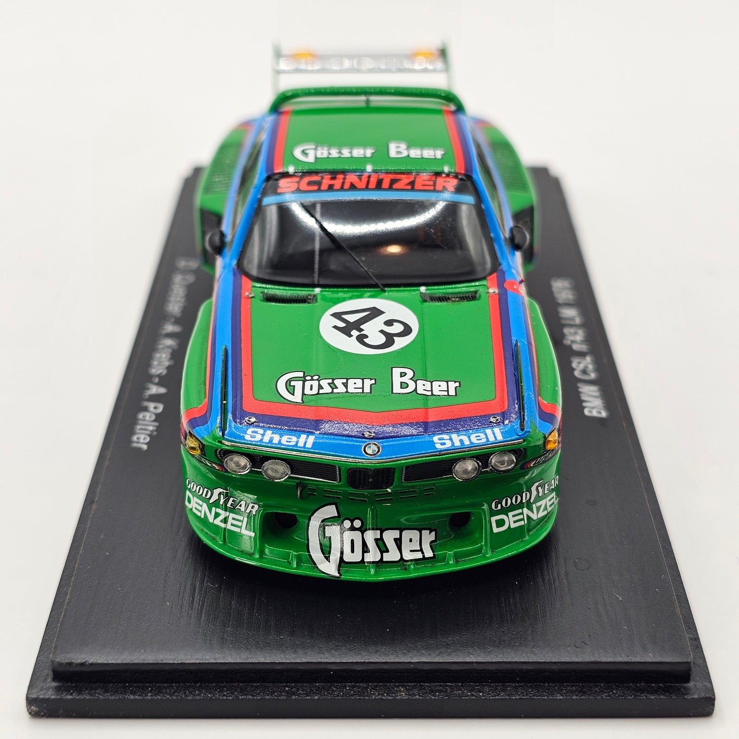 Highly detailed, discontinued and now rare resin Spark model of the BMW 3.0 CSL #43 Schnitzer Motorsport, as driven by Dieter Quester, Albrecht Krebs & Alain Peltier at the 1976 24 Hours of Le Mans in 1/43 scale.