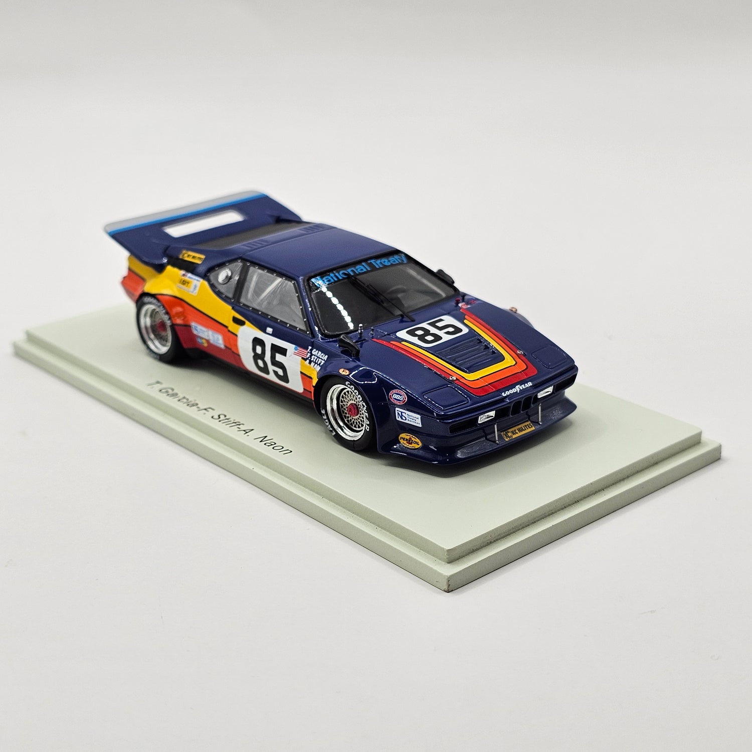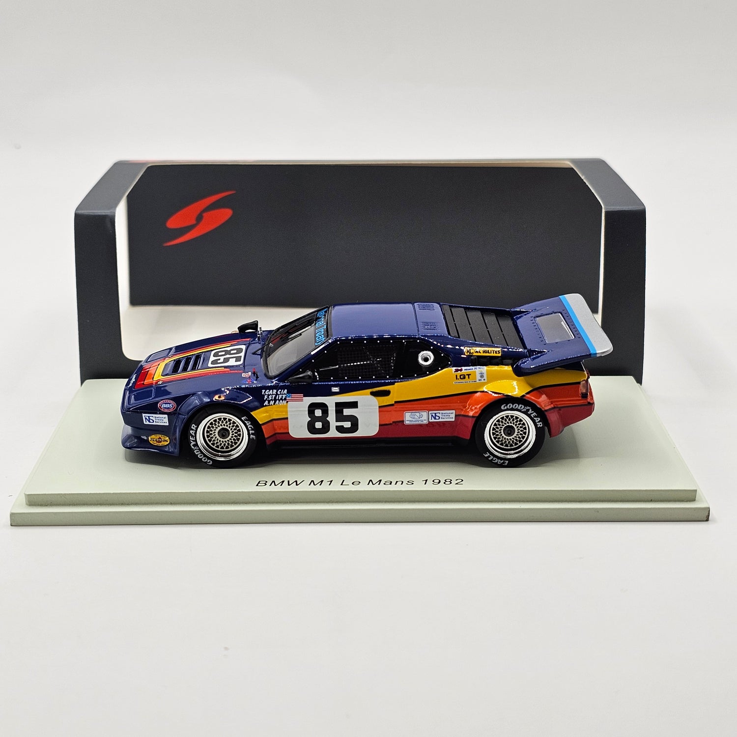 Highly detailed and now very rare resin Spark model of the BMW M1 #85 Tony Garcia Racing, as driven by Tony Garcia, Fred Stiff & Albert Naon at the 1982 24 Hours of Le Mans in 1/43 scale.