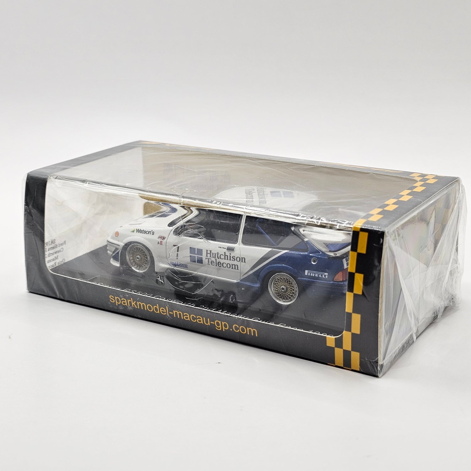 Highly detailed resin Spark model of the Ford Sierra RS500 Cosworth #7 Andy Rouse Macau Guia Race 1989 in 1/43 scale, measuring approximately 10cm in length.