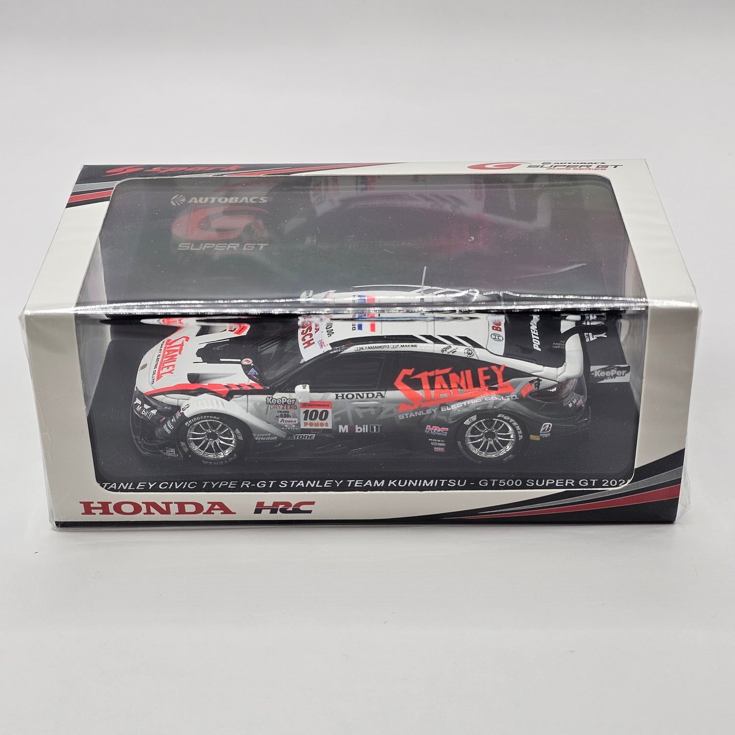 Highly detailed resin Spark model of the Honda Civic Type R-GT #100 Stanley Team Kunimitsu, as driven by Naoki Yamamoto & Tadasuke Makino to 2nd place in the 2025 Super GT season, in 1/43 scale.