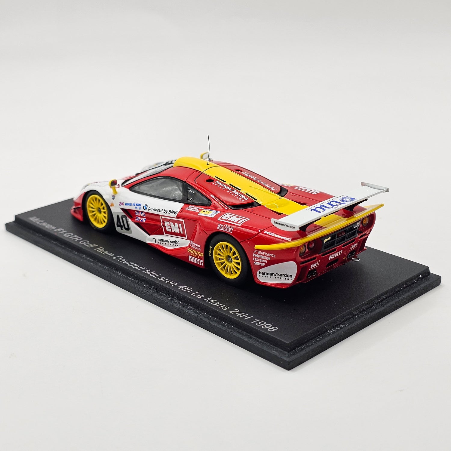 Highly detailed resin Spark model of the McLaren F1 GTR #40 Gulf Team Davidoff McLaren, as driven by Steve O'Rourke, Tim Sugden & Bill Auberlen at the 1998 24 Hours of Le Mans in 1/43 scale.