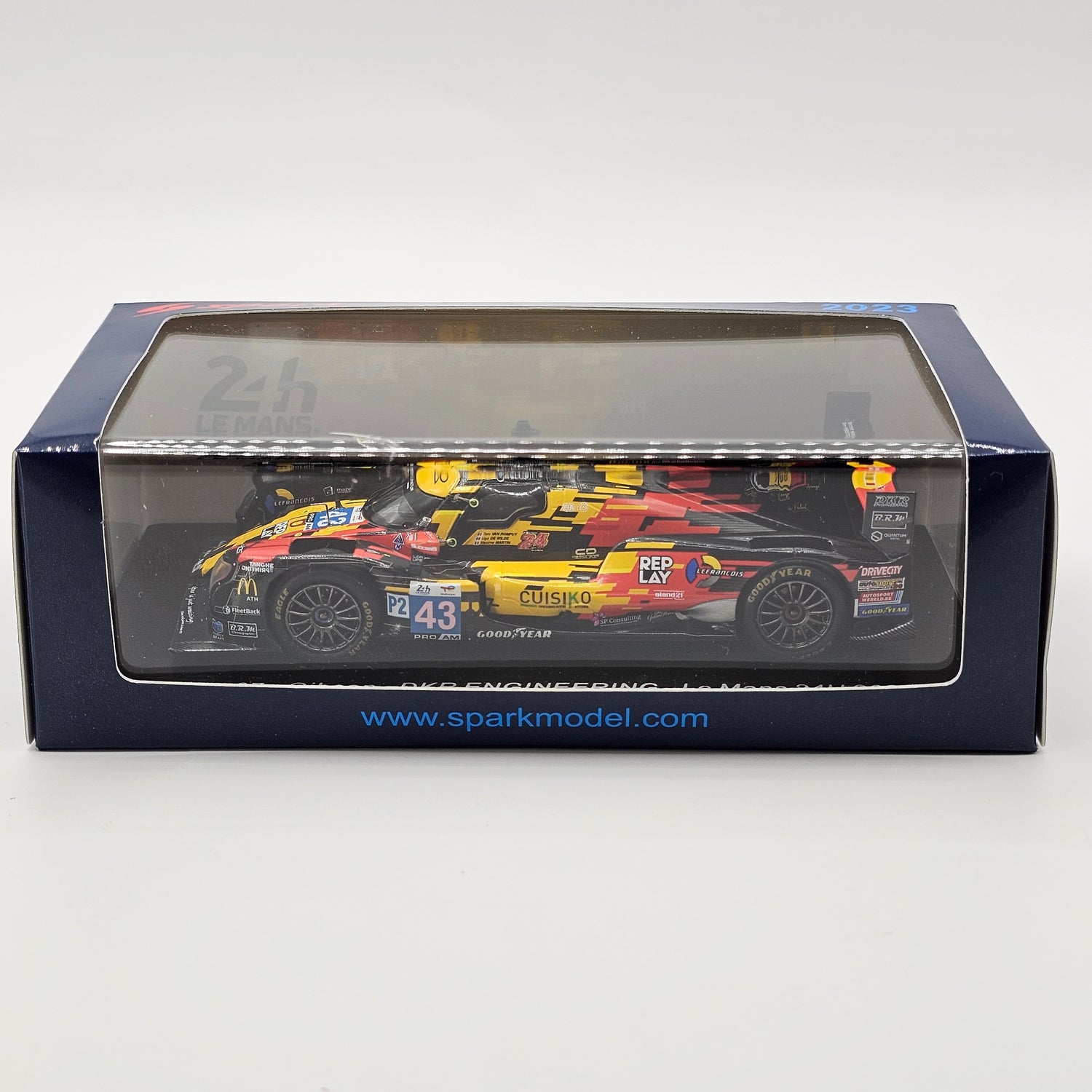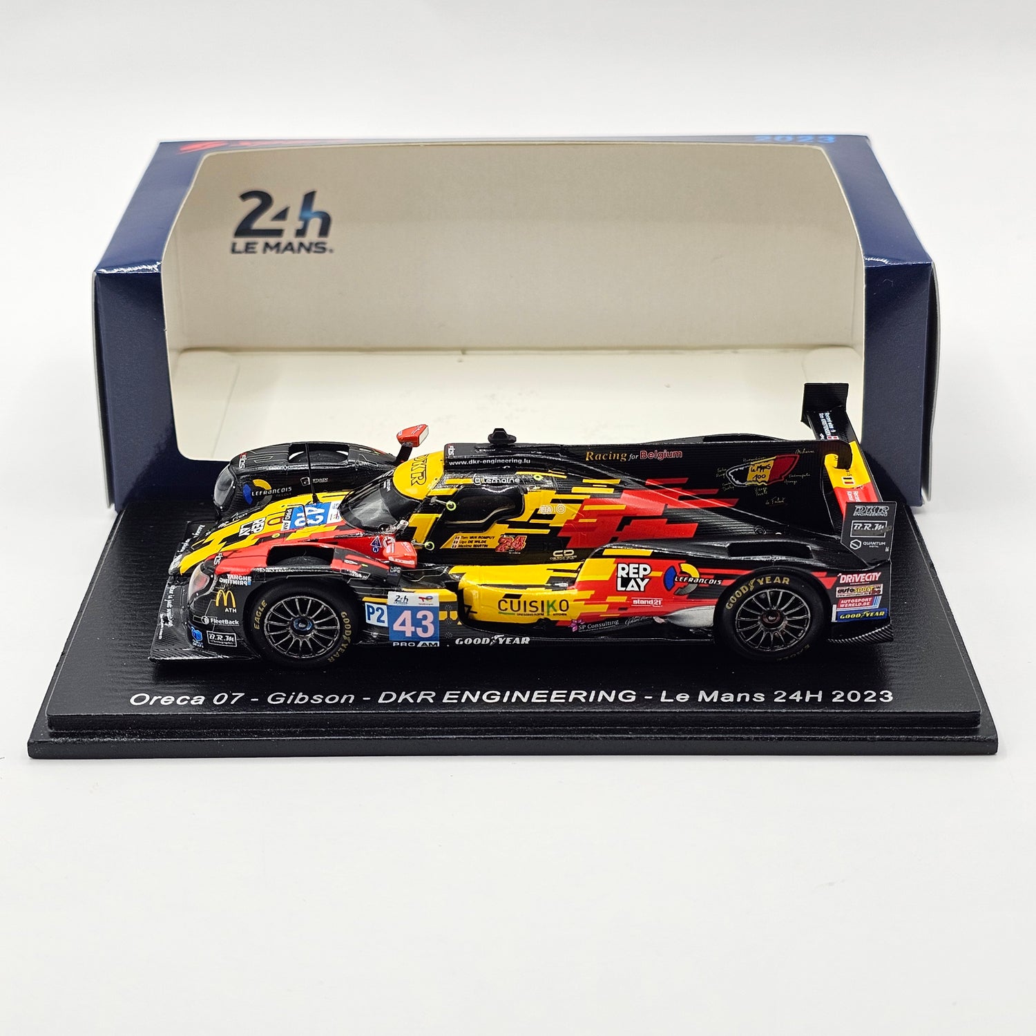 Highly detailed resin Spark model of the Oreca 07 Gibson #43 DKR Engineering, as driven by Maxime Martin, Tom van Rompuy & Ugo de Wilde at the 2023 24 Hours of Le Mans in 1/43 scale.