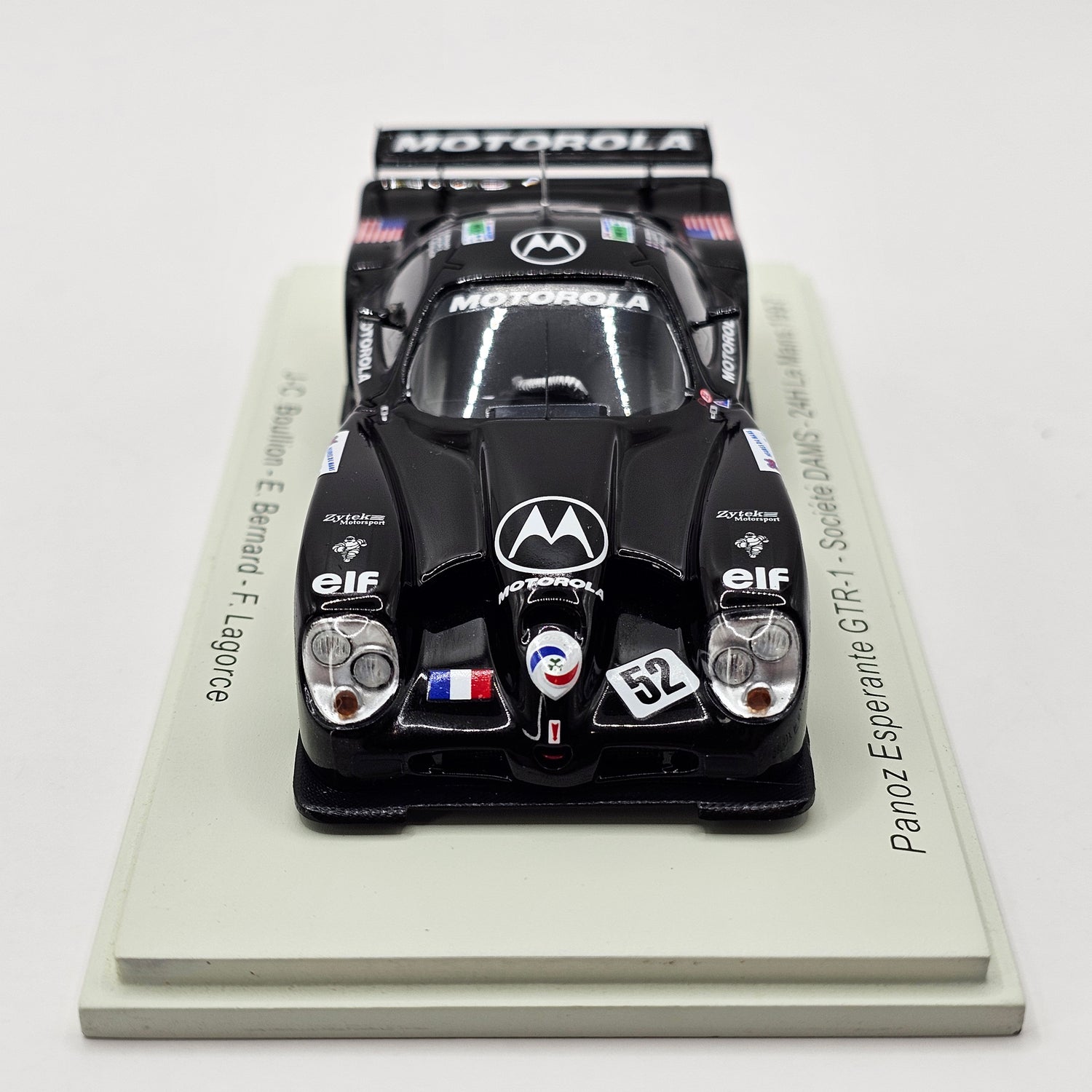 Highly detailed resin Spark model of the Panoz Esperante GTR-1 #52 DAMS, as driven by Franck Lagorce, Éric Bernard & Jean-Christophe Boullion at the 1997 24 Hours of Le Mans in 1/43 scale.