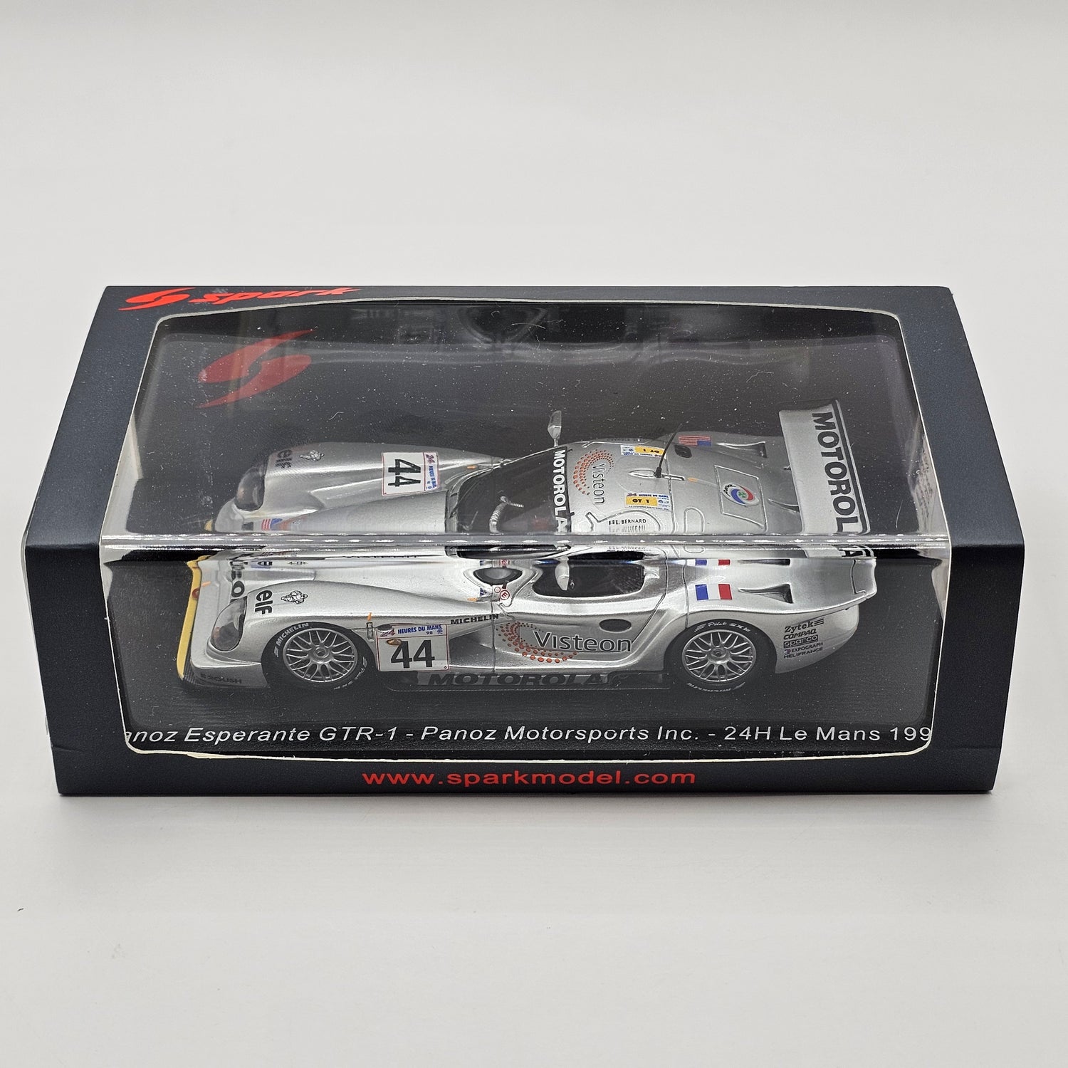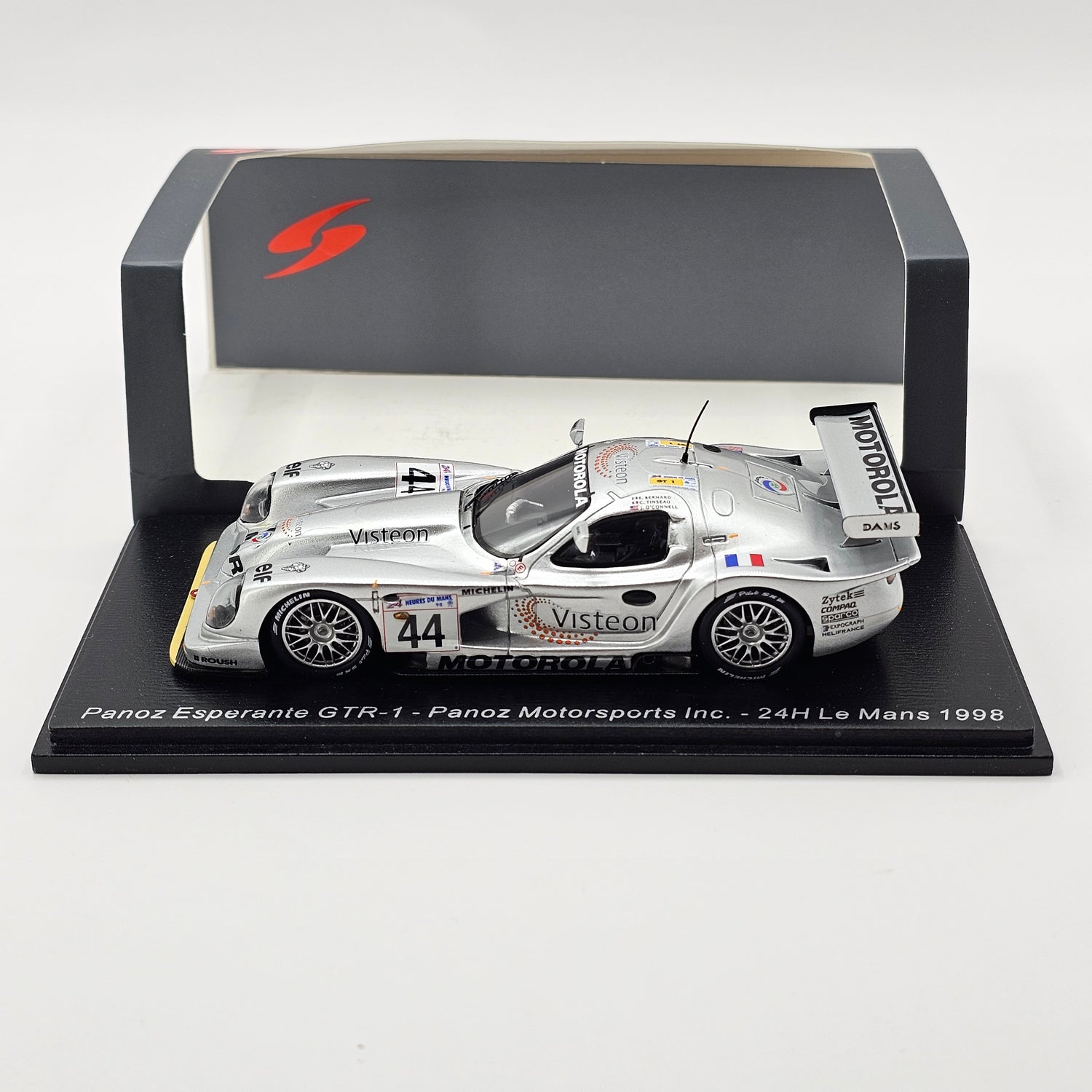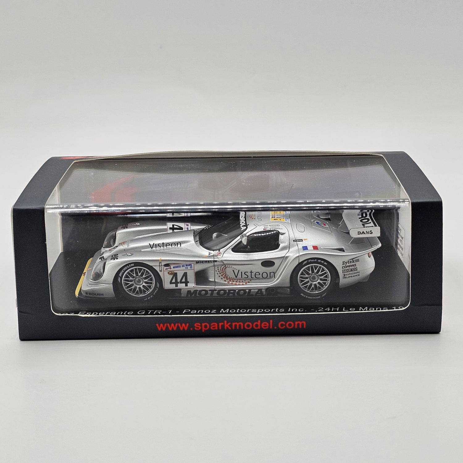 Highly detailed resin Spark model of the Panoz Esperante GTR-1 #44 Panoz Motorsports, as driven by Éric Bernard, Christophe Tinseau & Johnny O'Connell at the 1998 24 Hours of Le Mans in 1/43 scale.