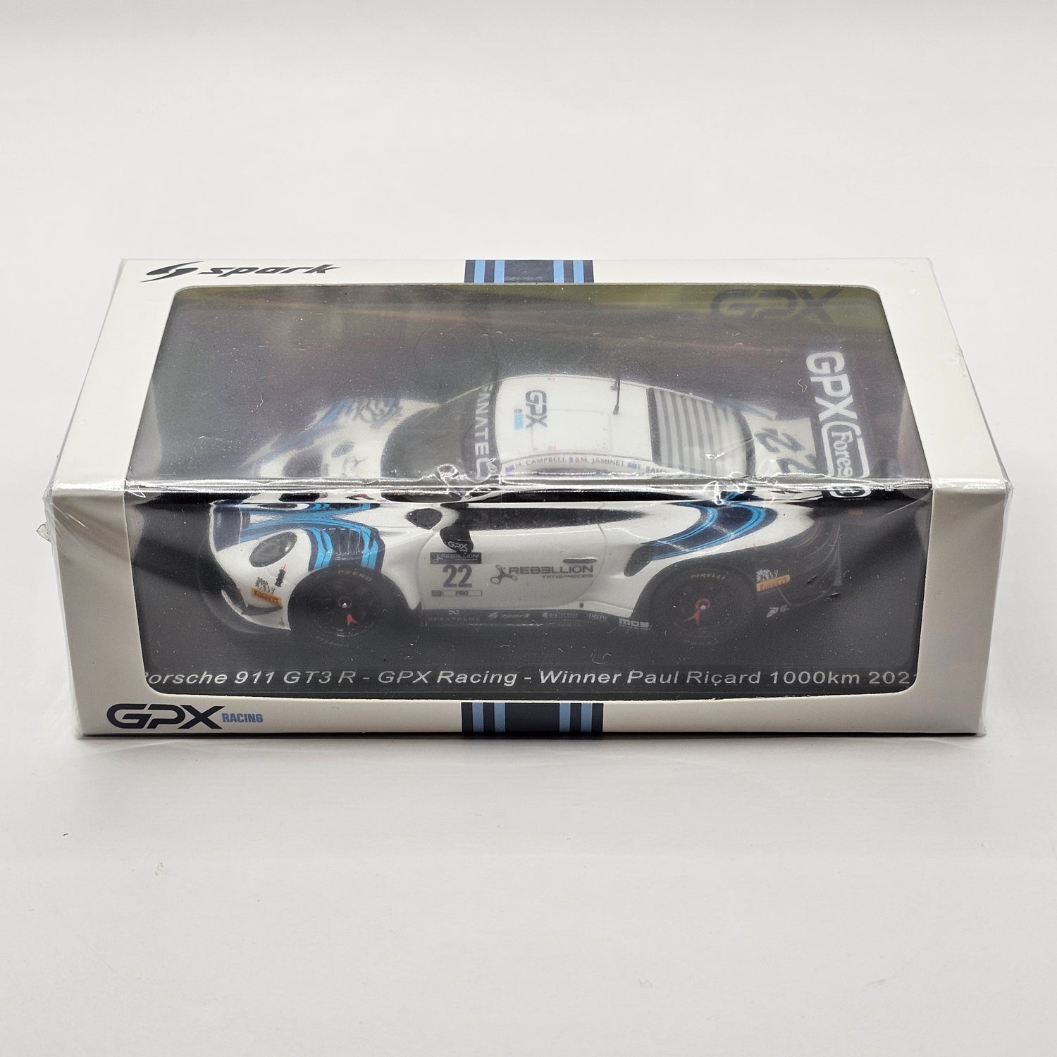 Highly detailed resin Spark model of the Porsche 911 GT3R #22 GPX Martini Racing Winner Paul Ricard 1000KM 2021 in 1/43 scale, measuring approximately 10cm in length.