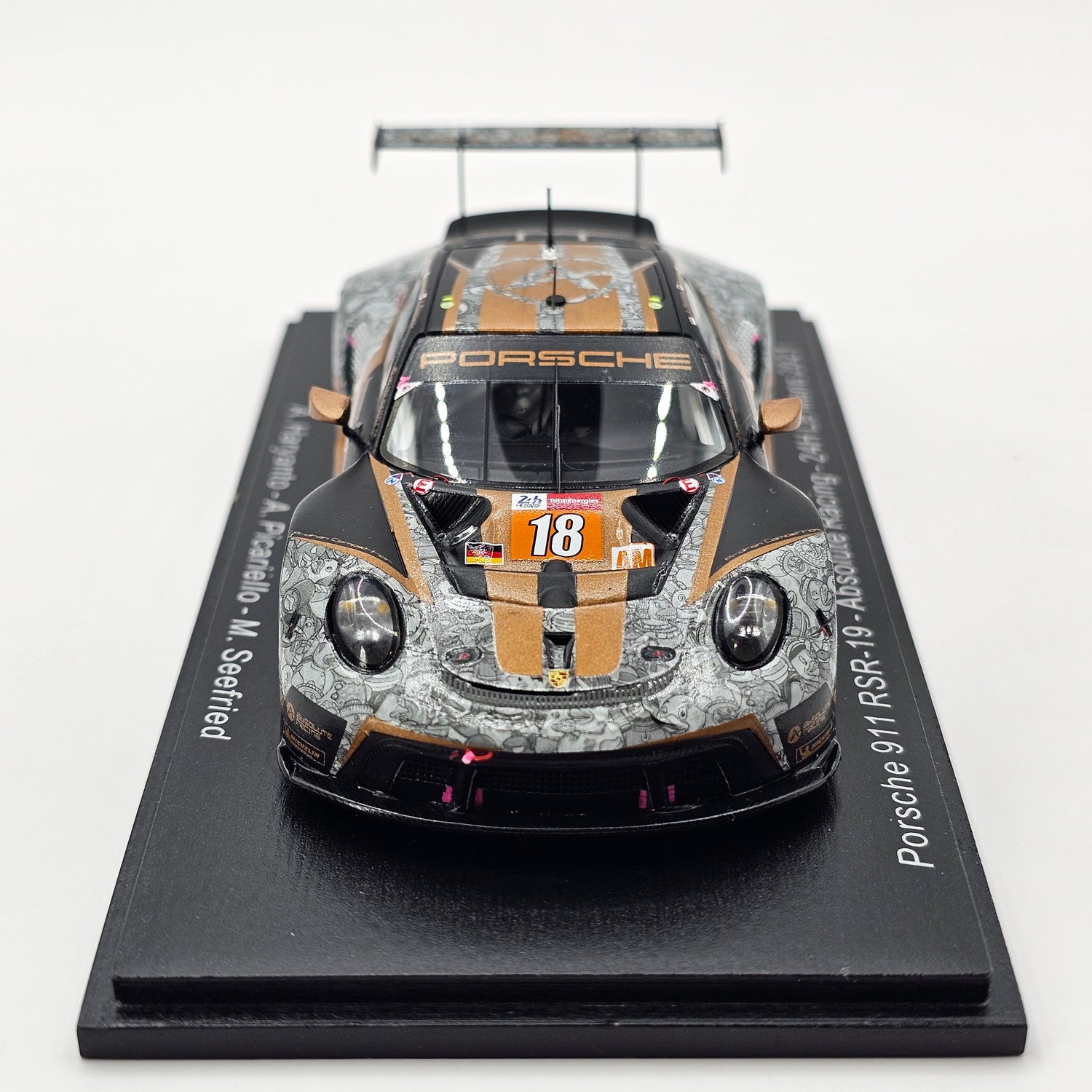 Highly detailed Spark model of the Porsche 911 RSR-19 #18 Absolute Racing, as driven by Andrew Haryanto, Alessio Picariello & Marco Seefried at the 2021 24 Hours of Le Mans.