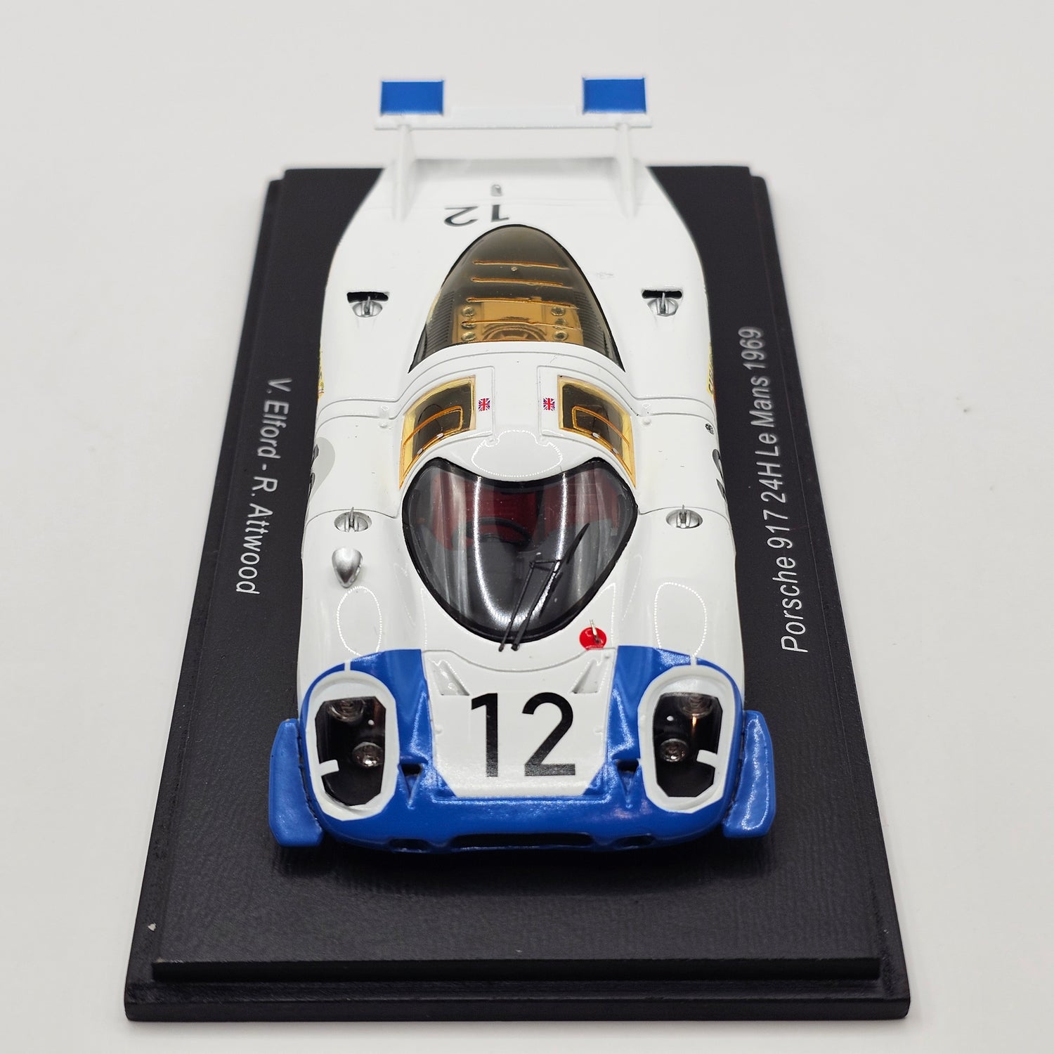 Highly detailed resin Spark model of the Porsche 917LH #12 Porsche System Engineering in 1/43 scale, as driven by Vic Elford & Richard Attwood at the 1969 24 Hours of Le Mans.