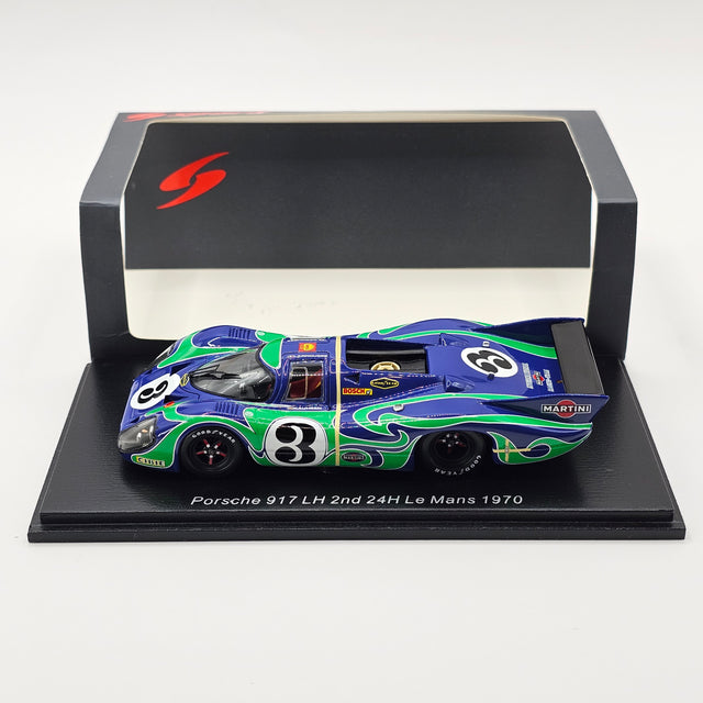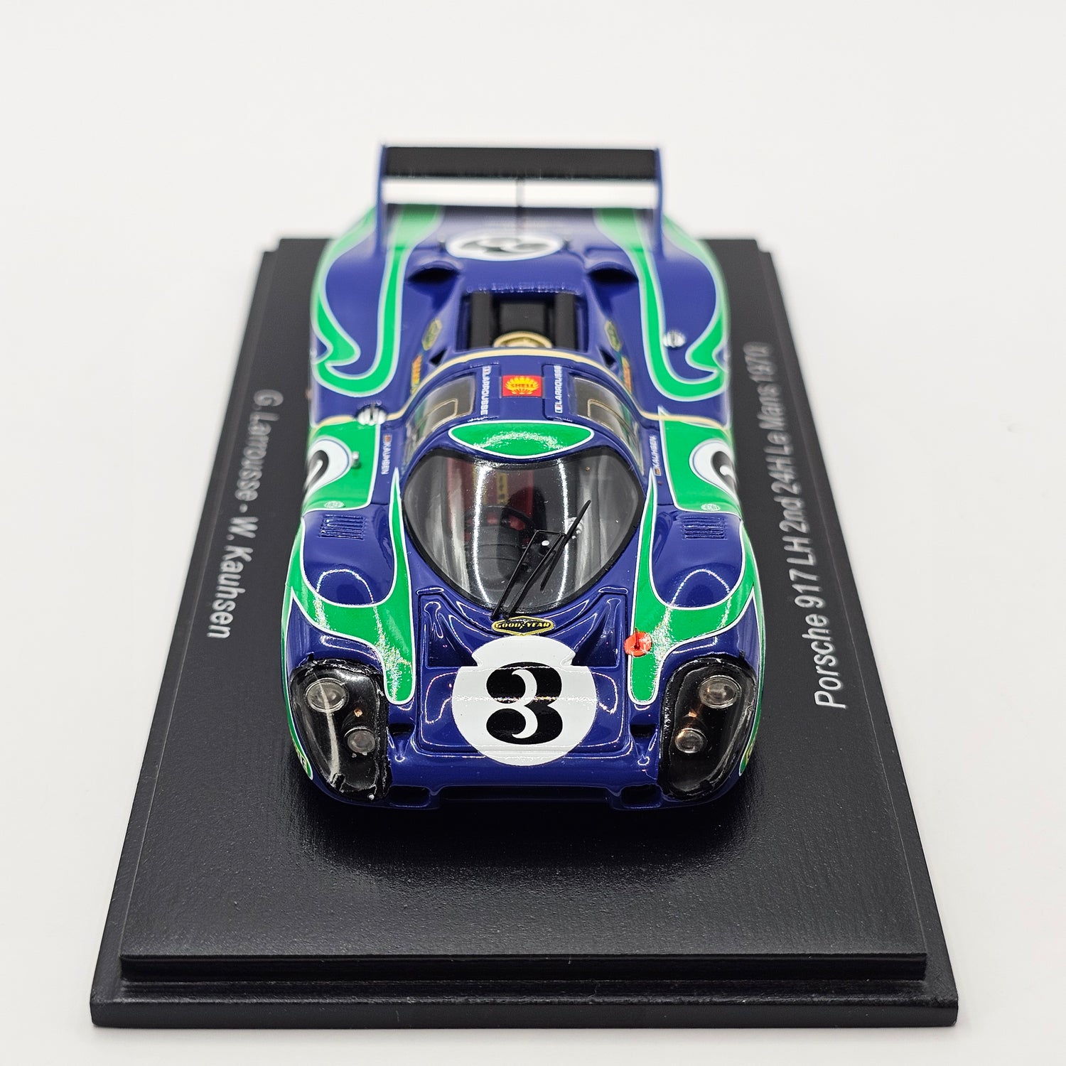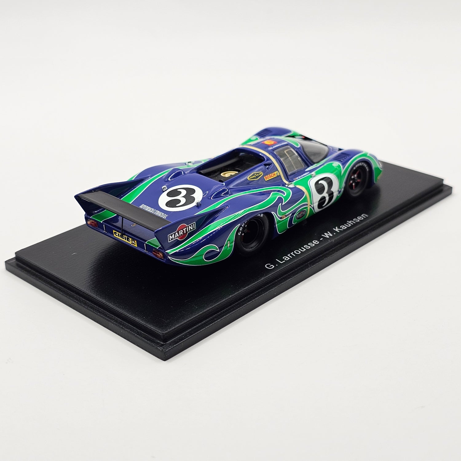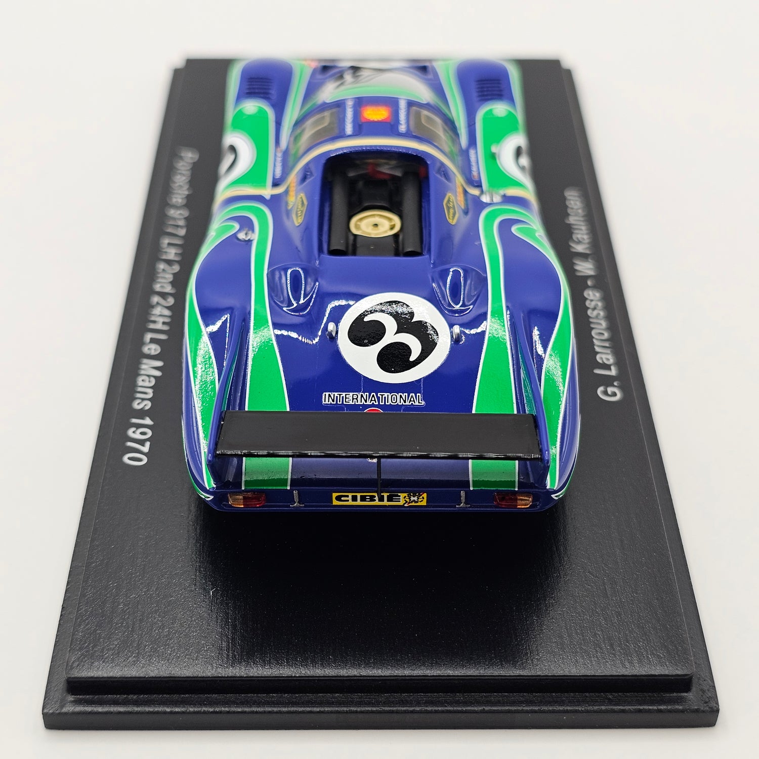 Highly detailed resin Spark model of the Porsche 917LH #3 Martini International, as driven by Gérard Larrousse & Willi Kauhsen to second overall place at the 1970 24 Hours of Le Mans in 1/43 scale.