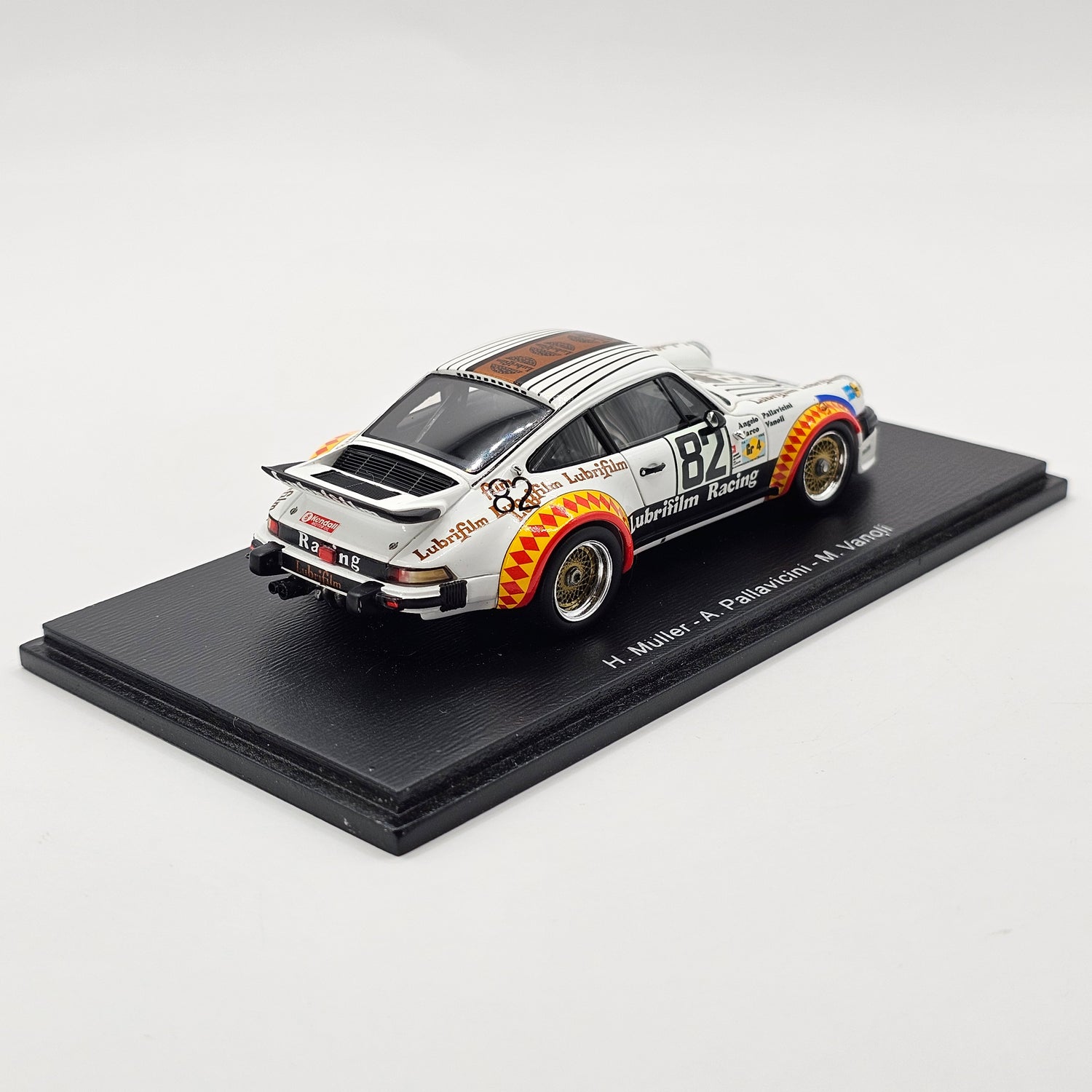 Highly detailed and now quite rare Spark model of the Porsche 934 #82 Lubrifilm Racing Team, as driven by Herbert Müller, Angelo Pallavicini & Marco Vanoli at the 1979 24 Hours of Le Mans.