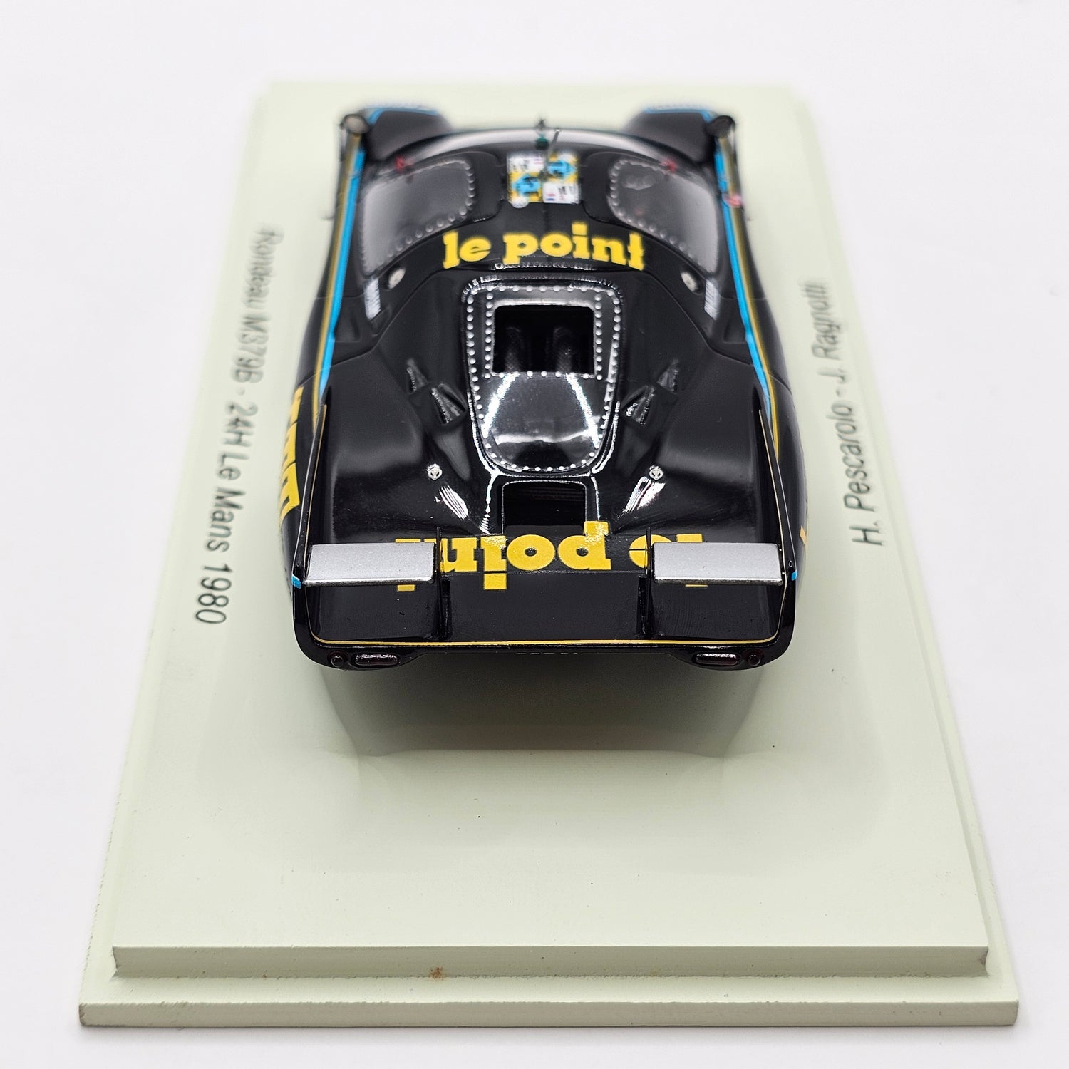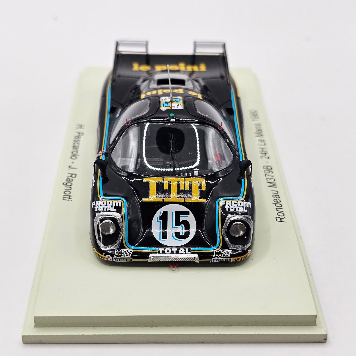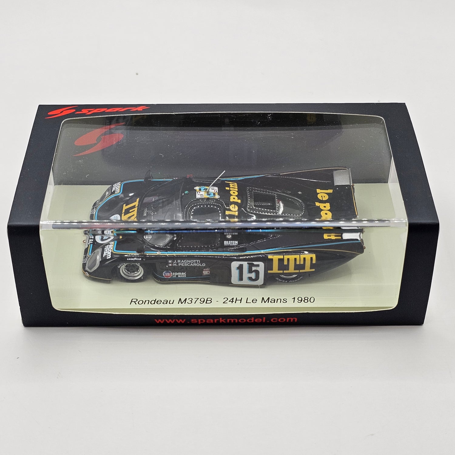 Highly detailed resin Spark model of the Rondeau M379B #15 Jean Rondeau, as driven by Henri Pescarolo & Jean Ragnotti at the 1980 24 Hours of Le Mans in 1/43 scale.