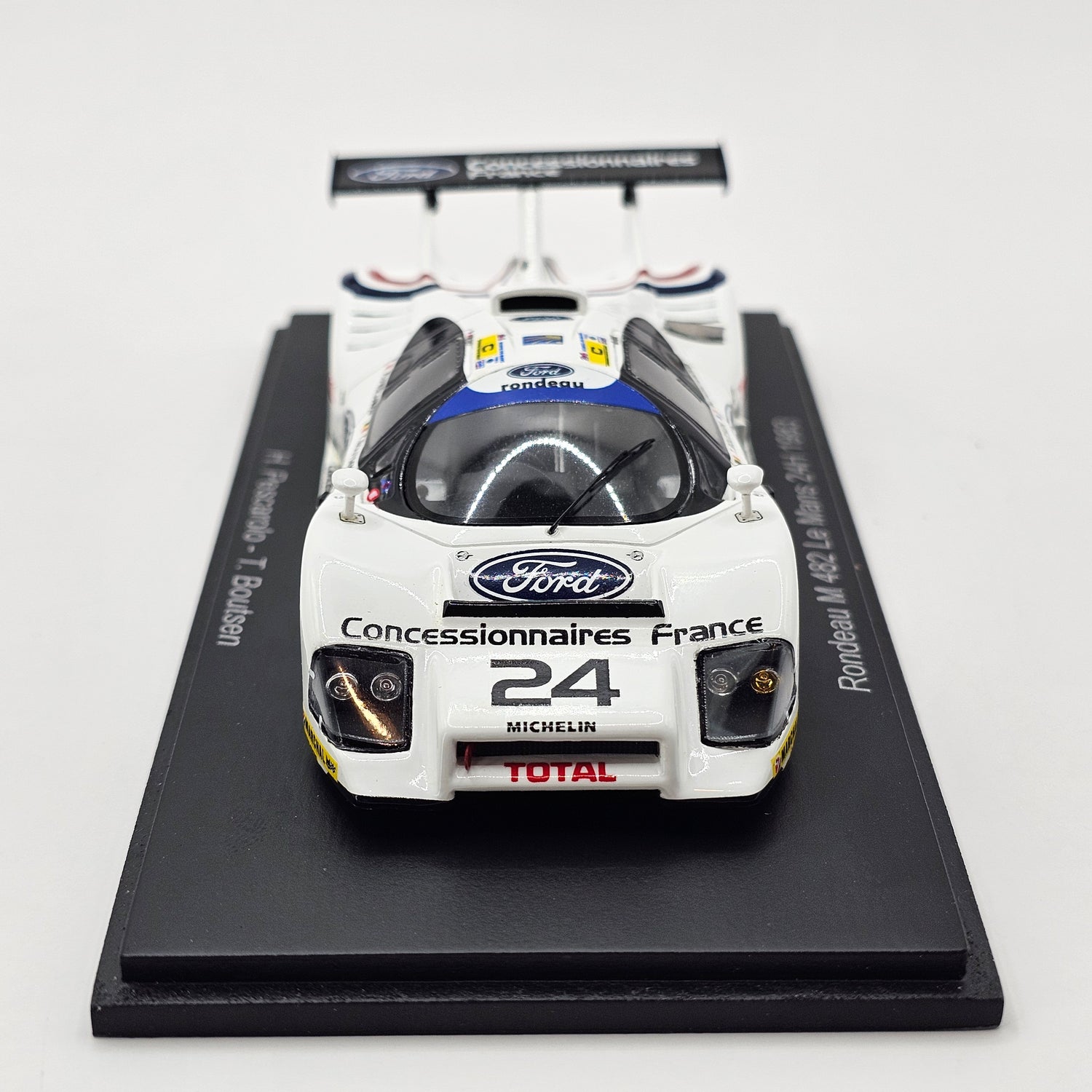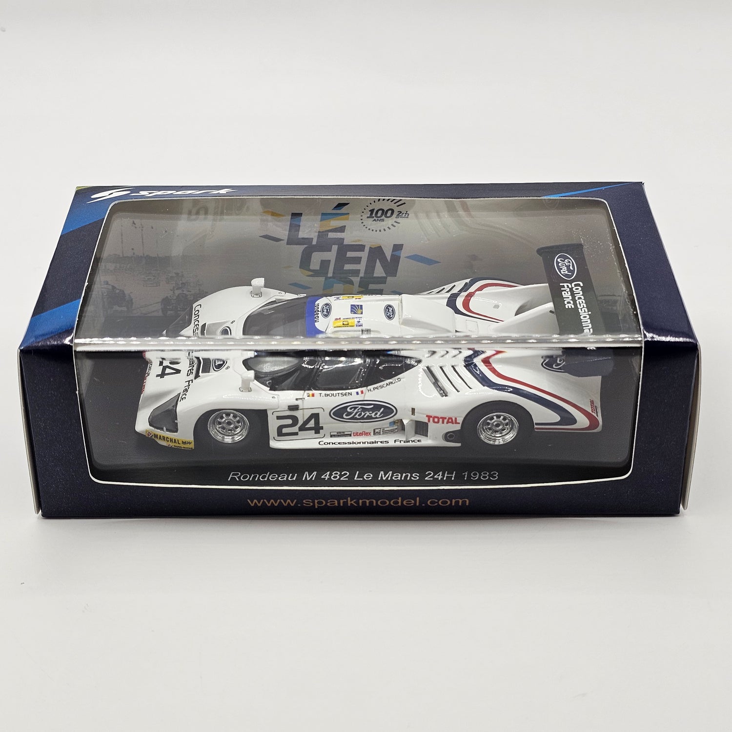 Highly detailed resin Spark model of the Rondeau M482 #24 Ford Concessionaires France, as driven by Henri Pescarolo & Thierry Boutsen at the 1983 24 Hours of Le Mans in 1/43 scale.
