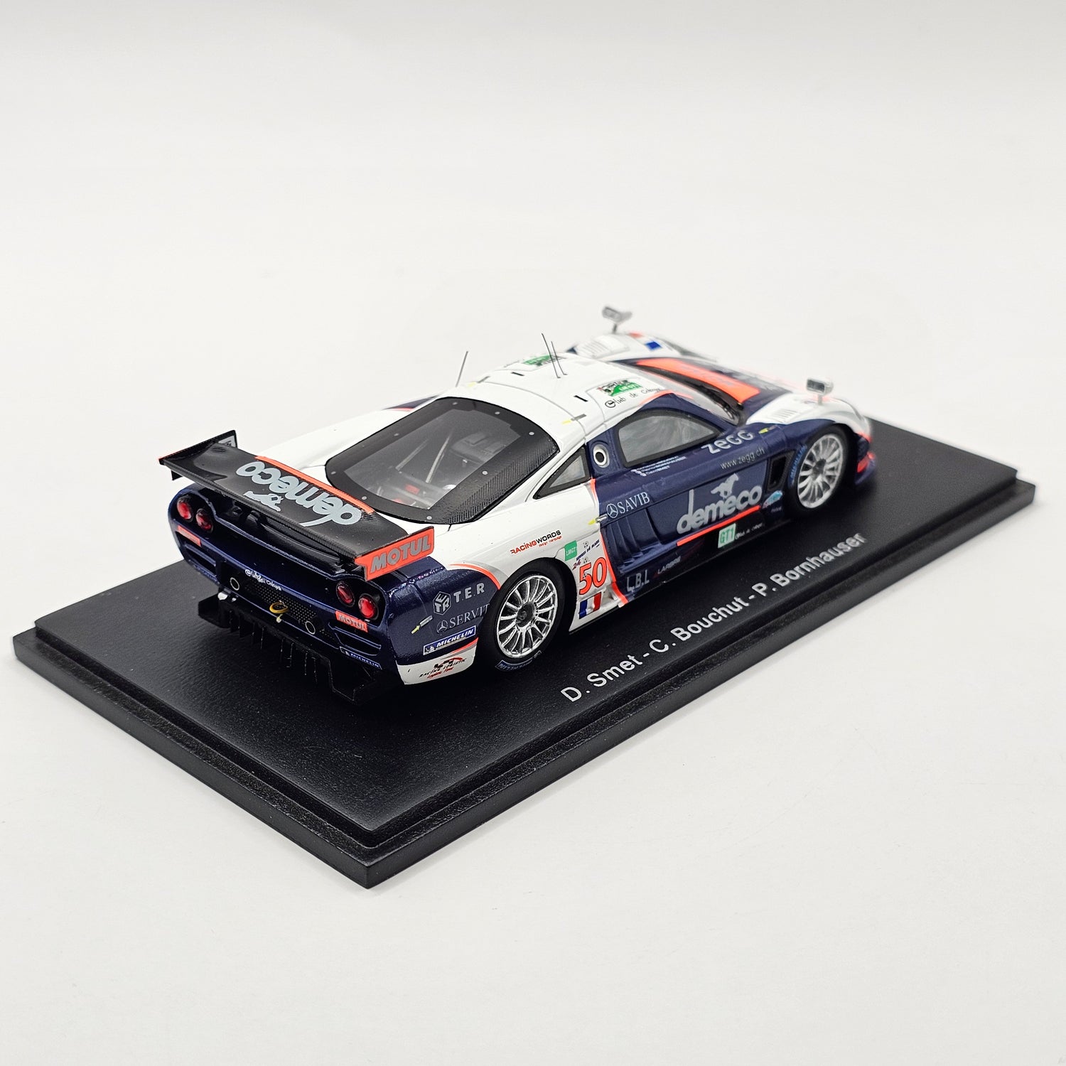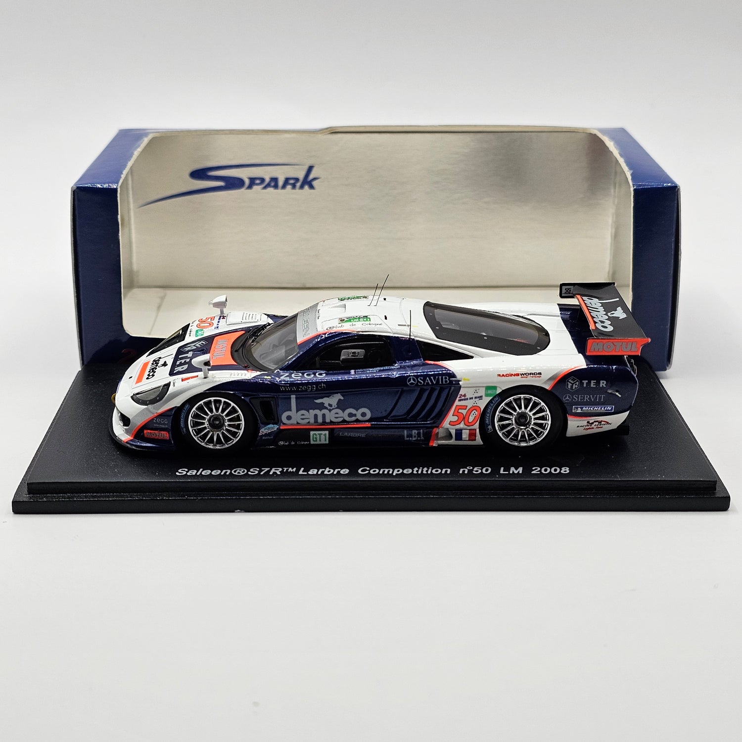 Highly detailed resin Spark model of the Saleen S7R #50 Larbre Compétition 24Hrs Le Mans 2008 in 1/43 scale, as driven by Christophe Bouchut, David Smet & Patrick Bornhauser to 28th overall position.